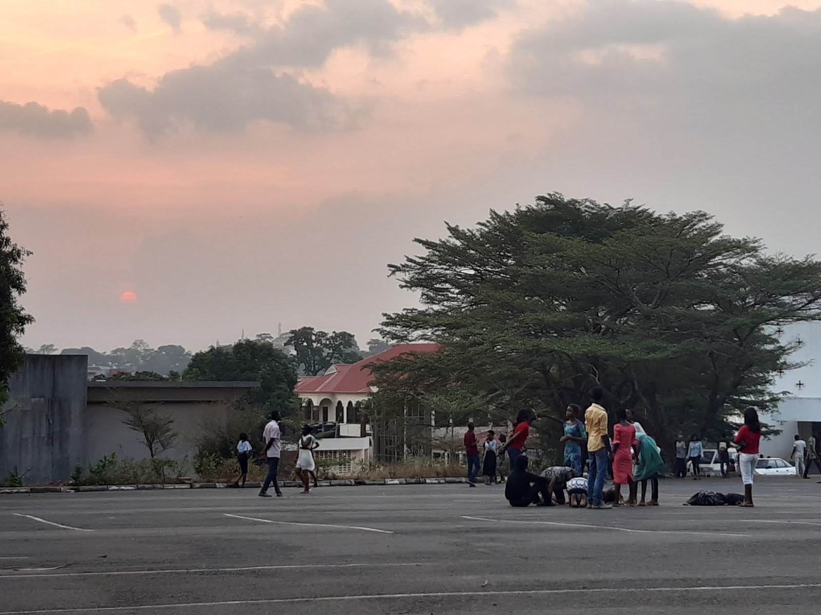 Student Pentecostal fellowships usually gather in the evening, sometimes filling the space with hundreds of people, dispatched in smaller groups like passengers waiting at a crowded terminal's boarding gates. Groups would naturally use the whole width and length of the area to avoid that others’ cacophony mutes their own sermons. Well organised fellowships usually succeed to perform a prayer service or a bible study on the tarmac through a carefully rhythmed, although acoustical, succession of actions. As members slowly arrive and wait for the session to begin, they would start "warming-up” by pronouncing dimly, individually, some prayers, words, or sounds. Then, joint prayers, singings, sermons, healing performances would follow, punctuated by short but louder and louder tongue-speaking interludes, until the group would reach the final take-off, a seemingly "out of control", heated, collective frenzy. However, since March 2020, the tarmac atmosphere has been very different for some reasons. The first is the academic and non-academic staff strikes. The second is the outbreak of the Covid-19 pandemic that led to schools' closure.